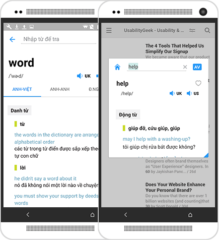 Xem nghĩa bất kì đâu. Tra từ nhanh trong ứng dụng khác