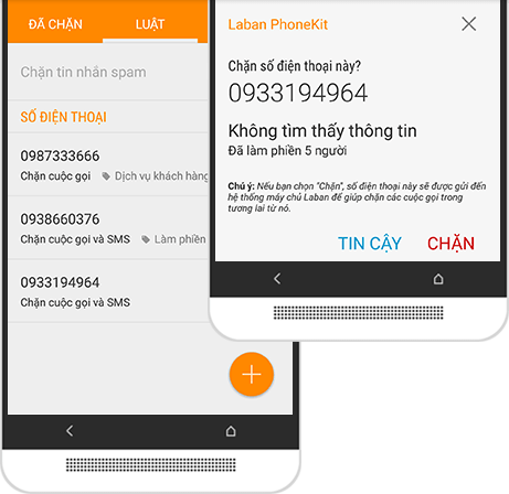 Chặn cuộc gọi, tin nhắn. Tạo luật chặn theo số điện thoại hoặc từ khóa.
